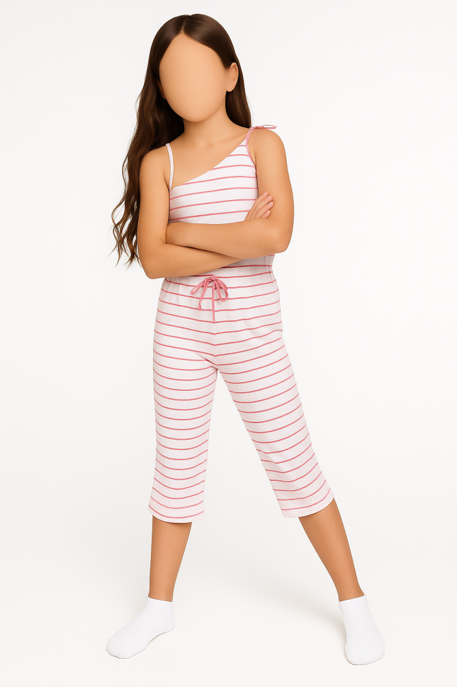 دلّلي صغيرتك بإطلالة مريحة وعصرية مع بيجامة اطفال بنات المصنوعة بعناية لتمنحها الراحة طوال اليوم، حيثُ تجمع هذه البيجامة بين الخامة الناعمة والتصميم المرح لتناسب أجواء اللعب والنوم على حدّ سواء، مما يجعلها خيارًا مثاليًا للأيام الصيفية الدافئة.